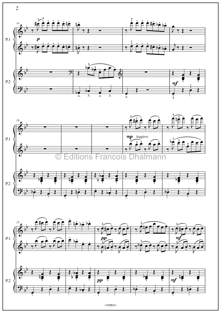 In the middle section (meno mosso), a legato theme in the lower register, accompanied by the first piano in the upper register (sounding like a music box), accentuates this impression of mystery.