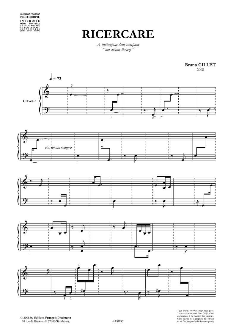 Cinq pièces contemporaines pour clavecin, destinées aux élèves débutant l’instrument :