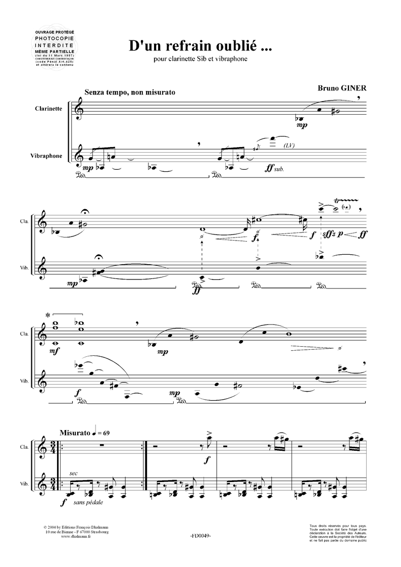 Partition pour clarinette en Sib et vibraphone.