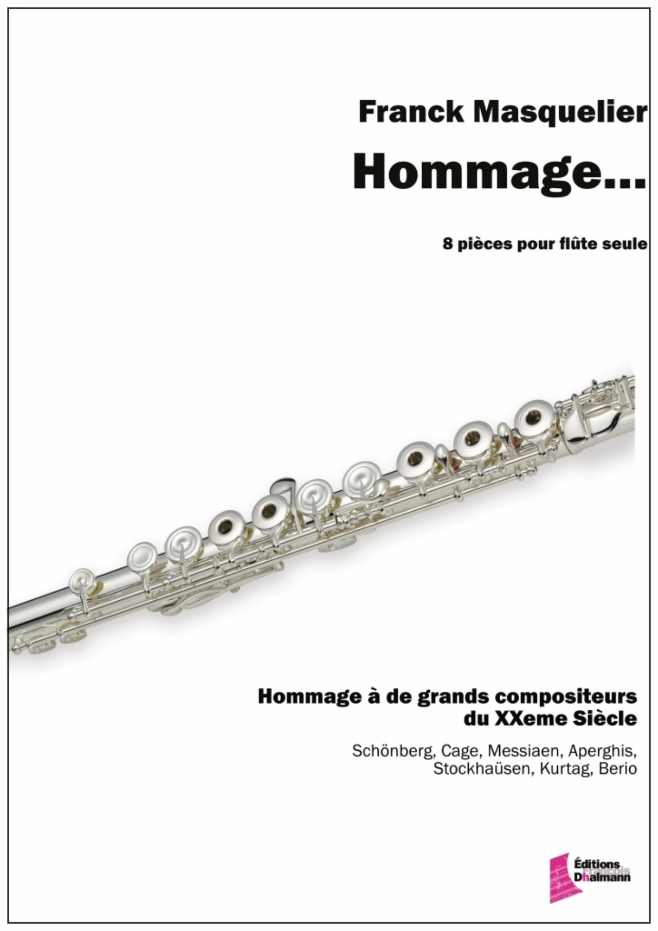 Ce cycle de 8 pièces pour flûte seule Hommage… est écrit en hommage à de grands compositeurs du XX° siècle (Schönberg, Cage, Messiaen, Aperghis, Stockhaüsen, Kurtag, Berio). Une seule pièce n’est pas un hommage à un de ces compositeurs.