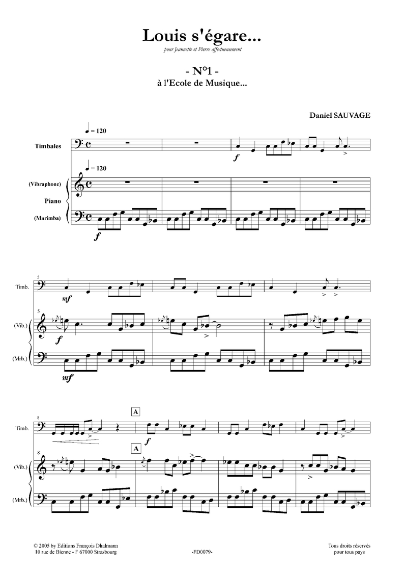 Percussion et accompagnement de piano ou vibra et marimba.
