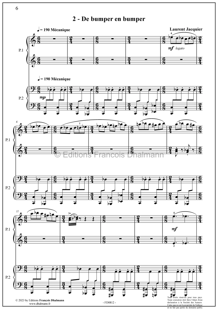 « De bumper en bumper » illustre le trajet aléatoire et parfois inattendu d’une boule de flipper avec ses mesures tantôt binaires, tantôt ternaires, et ses contrastes de nuances.