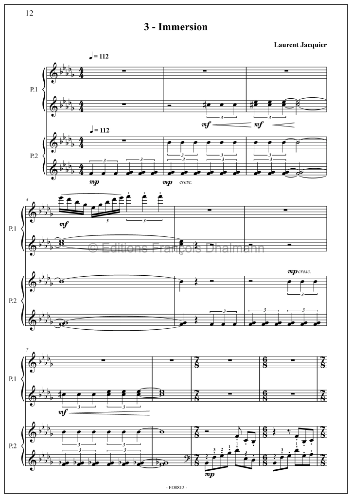 Pièce centrale du recueil « Immersion » est une pièce plus intérieure et méditative, basée sur la répétition d’un ostinato qui alterne les mesure à 7/8 et 6/8, avec une mélodie qui semble flotter au dessus.