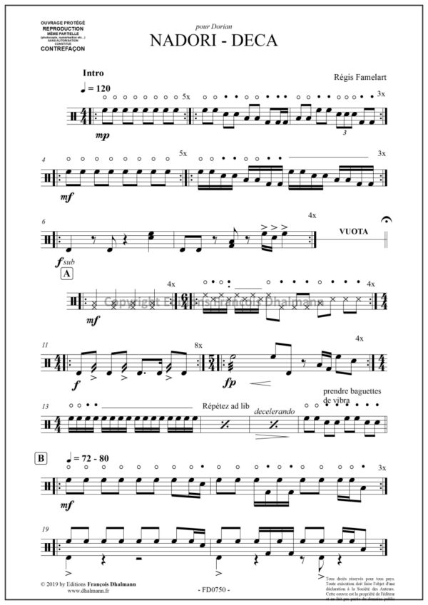 Partition pour multipercussion solo.
