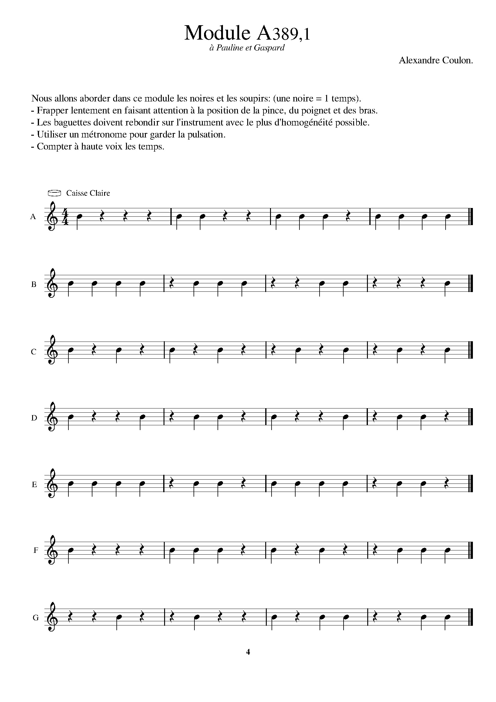 Certaines pièces s’inspirent de compositeurs tels que : Georges Aperghis, Bruno Giner, Thierry de Mey, Jean Pierre Drouet,… Dans cette méthode sont utilisées des percussions dites « classiques », mais également des objets moins conventionnels comme le peigne, une clé d’outillage, un pot en terre cuite, un vase, une bouteille, des verres, un saladier, une truelle … L’apprenant disposera d’un large aperçu de la percussion en améliorant sa musicalité ; cela passe notamment par un travail sur les nuances, la souplesse et le geste.