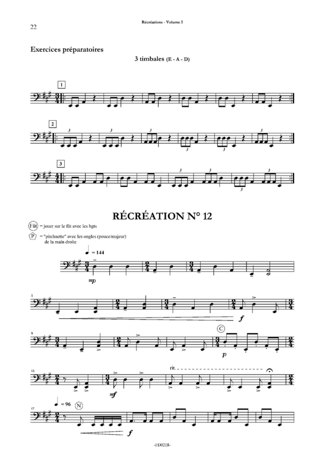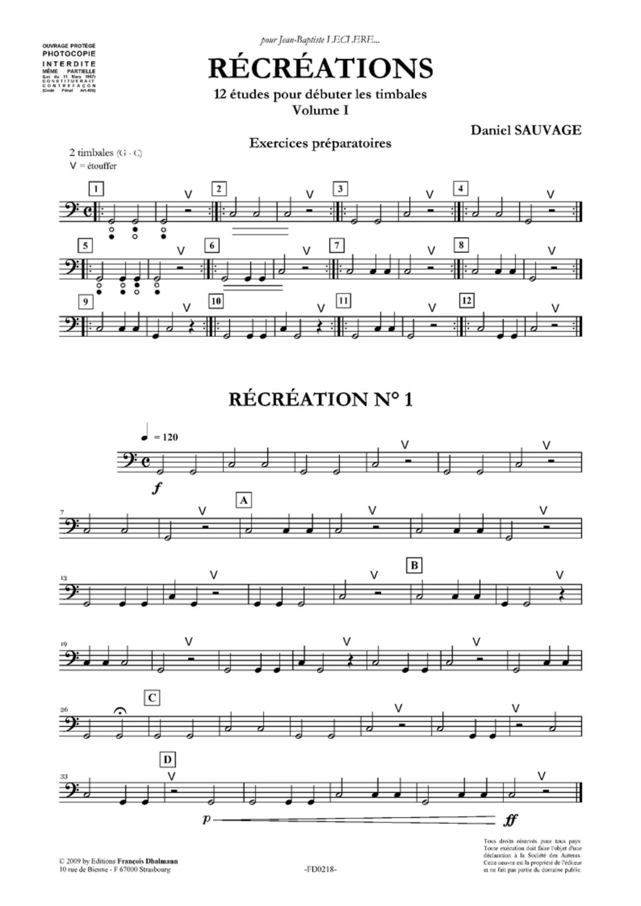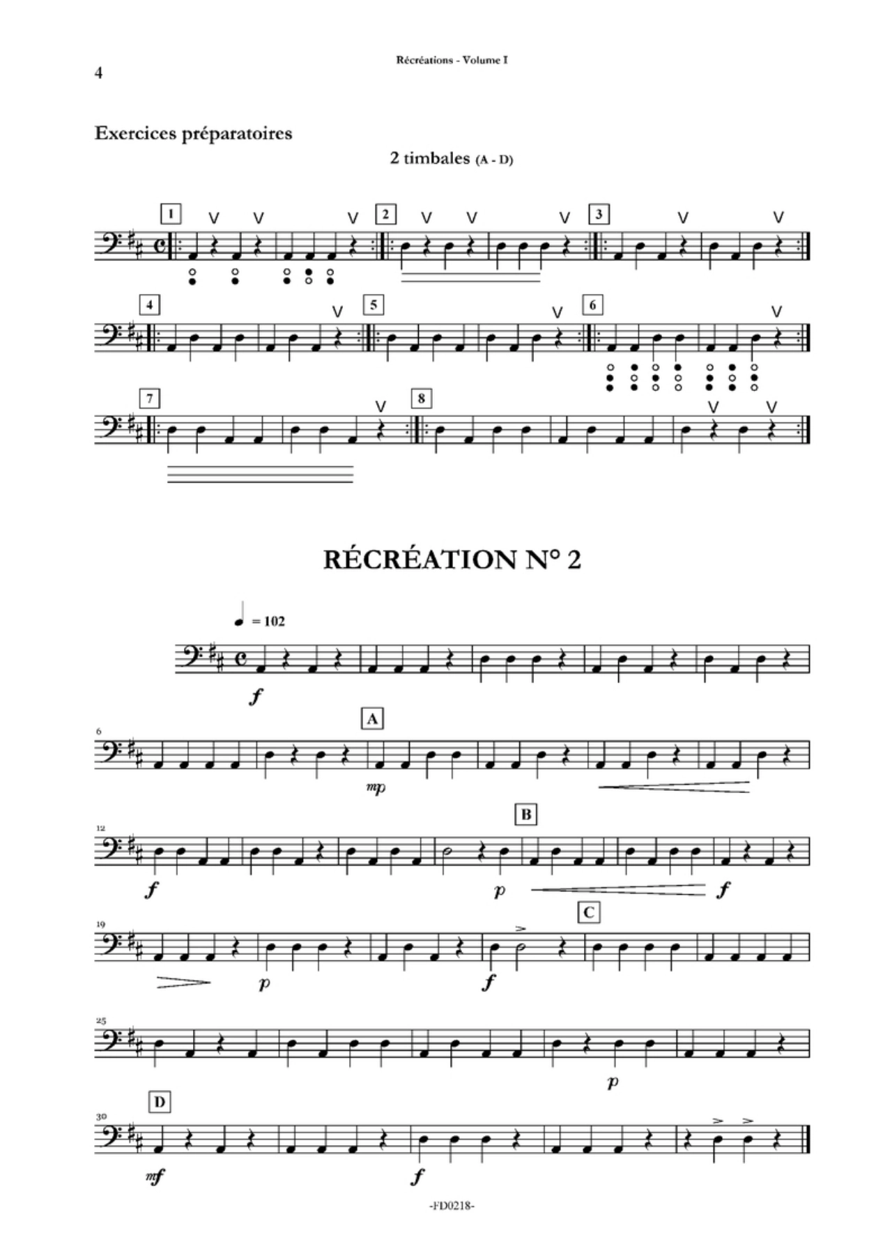 Récréations, Volume 2. 12 études pour continuer les timbales – Daniel Sauvage