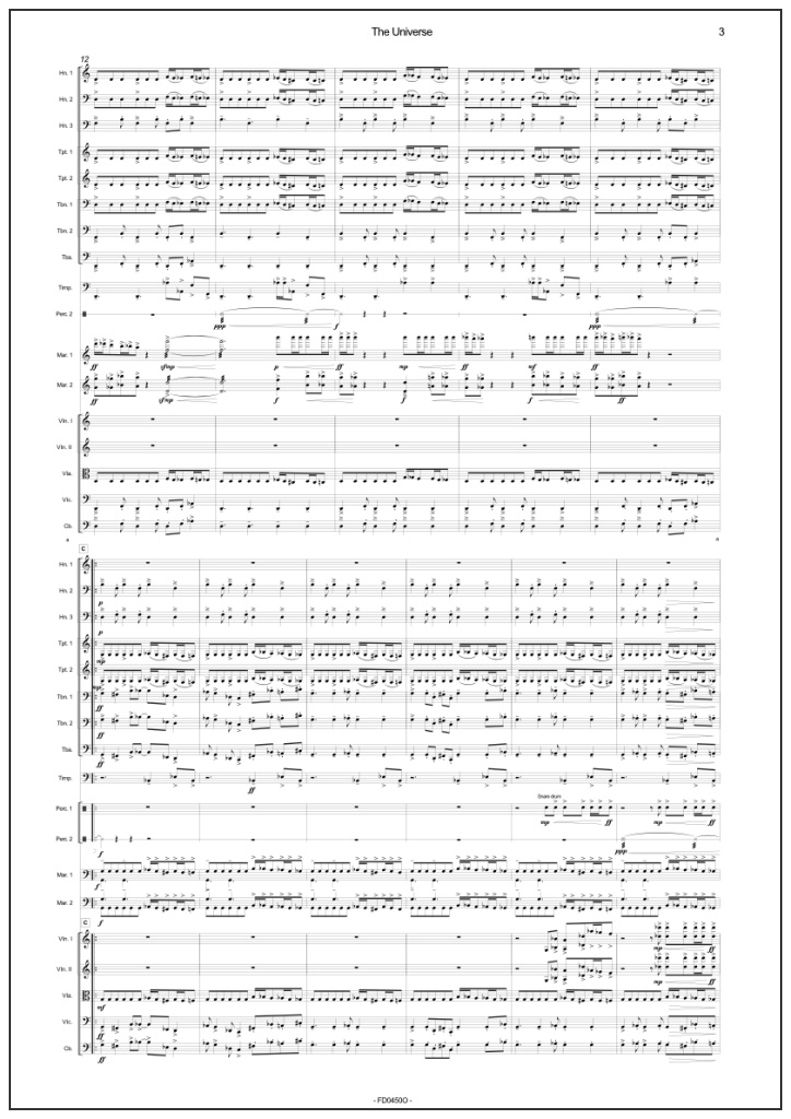 “The Universe” est une œuvre qui offre une expérience musicale riche et stimulante pour l’ensemble de l’orchestre et le public, avec des textures sonores complexes, des rythmes captivants et des mélodies envoûtantes. Cette pièce est une excellente option pour un orchestre à la recherche d’un défi technique et artistique, ainsi que d’une pièce captivante pour le public.