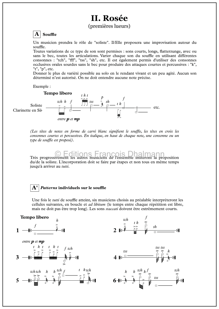 Pour la bonne réalisation de l’oeuvre, il est recommandé de réunir un minimum de vingt musiciens et de constituer des groupes équilibrés.